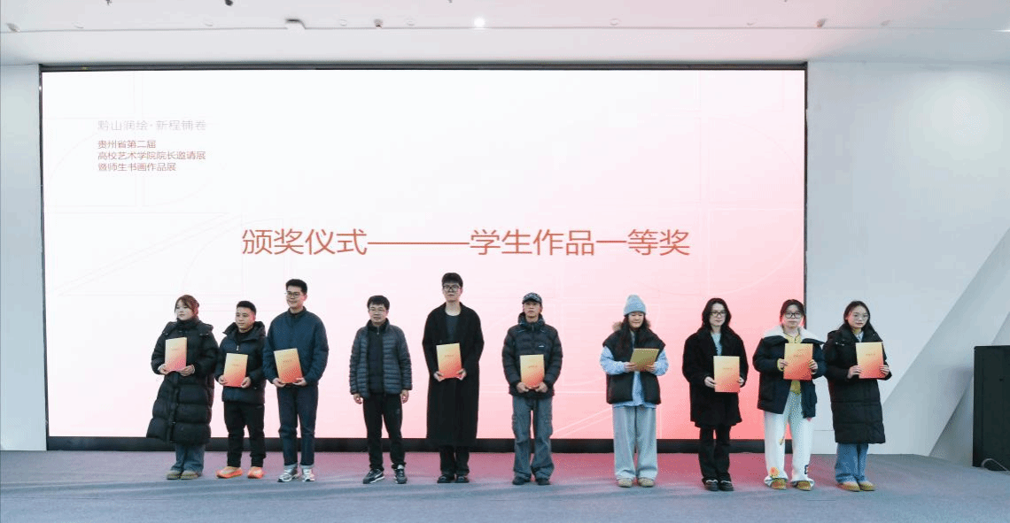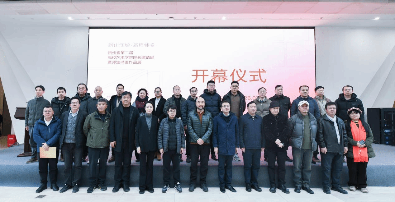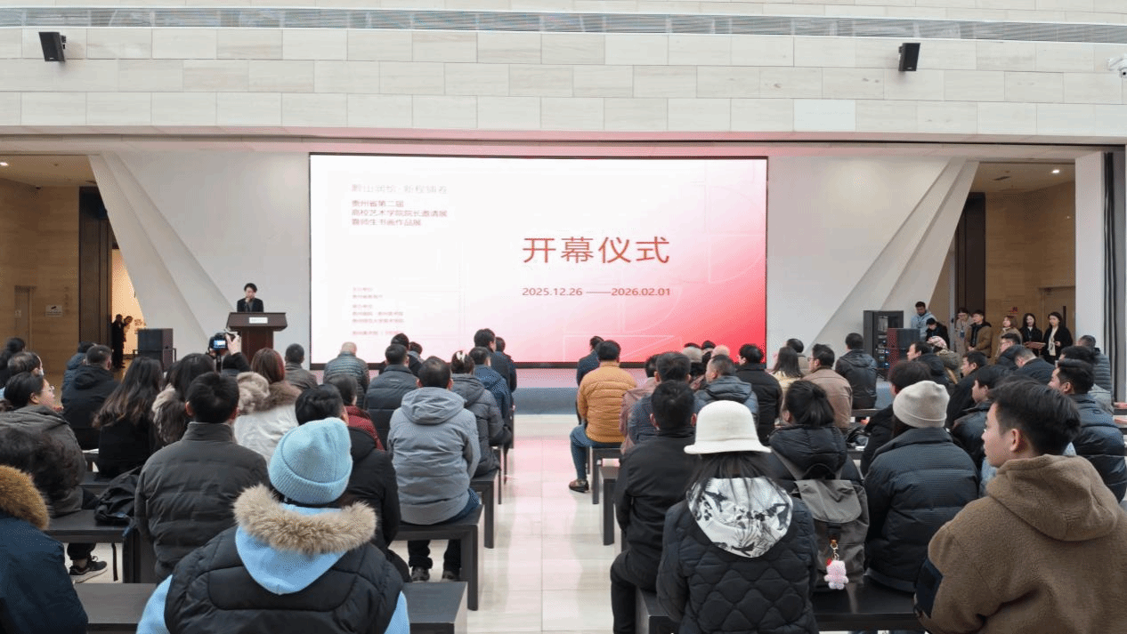 2025年12月26日下午,由贵州省教育厅主办,贵州画院(贵州美术馆)、贵州师范大学美术学院联合承办的“黔山润绘·新程铺卷:贵州省第二届高校艺术学院院长邀请展暨师生书画作品展”在贵州美术馆开幕。本次展览汇聚了全省高校师生创作的280多件作品,包括中国画、油画、版画、水彩画、连环画、书法、篆刻、设计等艺术门类,全方位展示了我省高校艺术专业的育人成果,为全省美育事业的高质量发展搭建了交流展示平台。