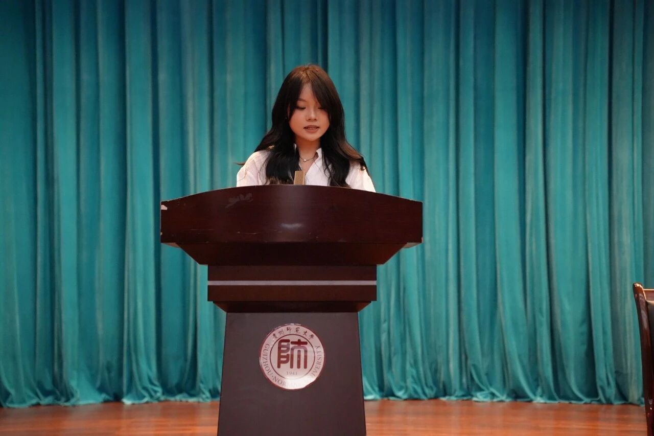 接着,本科新生代表周艺与研究生新生代表冯赵婉琳先后发言。他们的发言不仅是个人的表态,更凝聚了全体新生逐梦前行的坚定决心。