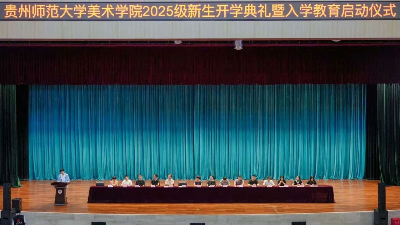 2025年8月31日上午,贵州师范大学美术学院300多名师生齐聚西校区大礼堂,隆重举行2025级新生开学典礼暨入学教育启动仪式。院党政班子成员、各系主任、各科室负责人、教师代表、新生辅导员、2025级全体新生参加。典礼由党委副书记杨红艳主持。