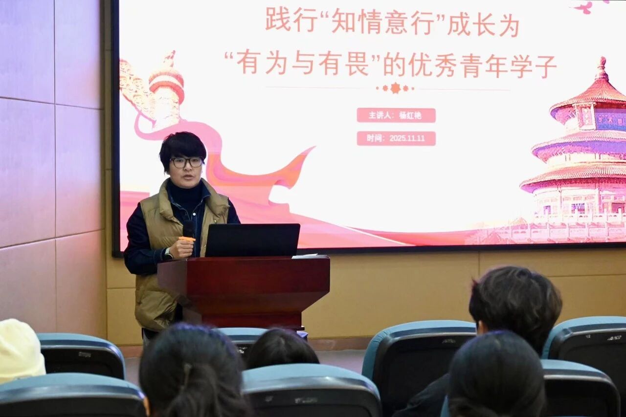 开班式后,首场专题讲座同步开讲。杨红艳副书记以“践行‘知情意行’,成长为‘有为与有畏’的优秀青年学子”为主题,聚焦学业之外的品德修养分享。她详解“知情意行”:以马克思主义原理筑牢“知”之基,厚植家国情怀涵养“情”之温,借神舟二十号等成就坚定“意”之念,在实践中践行“行”之担当。讲座中,她结合自身经历与王国维“人生三境界”阐释青年实干“有为”,强调“有畏”需敬畏规则与使命,坚守底线行稳致远。