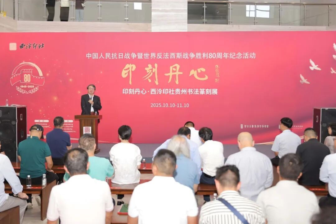 贵州省政协书画院专职副院长、省书协篆刻委员会主任、本次展览具体工作负责人秦良静介绍了展览筹备情况。他表示,此次展览的策划与组织得到了贵州省文联党组、西泠印社和贵州师范大学的高度重视与大力支持,并凝聚了多家单位与企业的协同力量。他指出,本次展览是继2024年西泠公益行“湖山有约·贵州书法篆刻展”成功举办之后的又一次精彩延续。通过持续引进西泠印社高质量的展览与交流活动,并邀请专家为篆刻骨干开展公益培训,旨在以强基帮扶为抓手,全面提升本地专业水平,积极营造浓厚的学习与创作氛围。