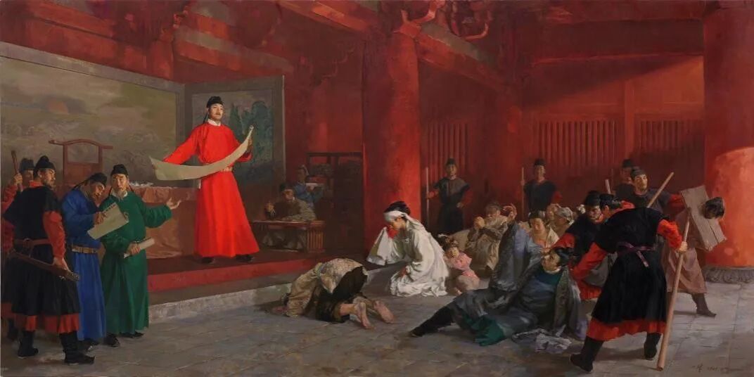 丁一林 《唐律疏议之官衙断案》 180x360cm 2016年